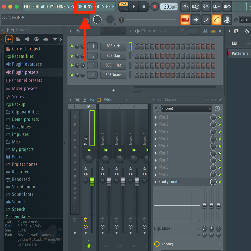 Open FL Studio, then click Options in the top menu bar.
