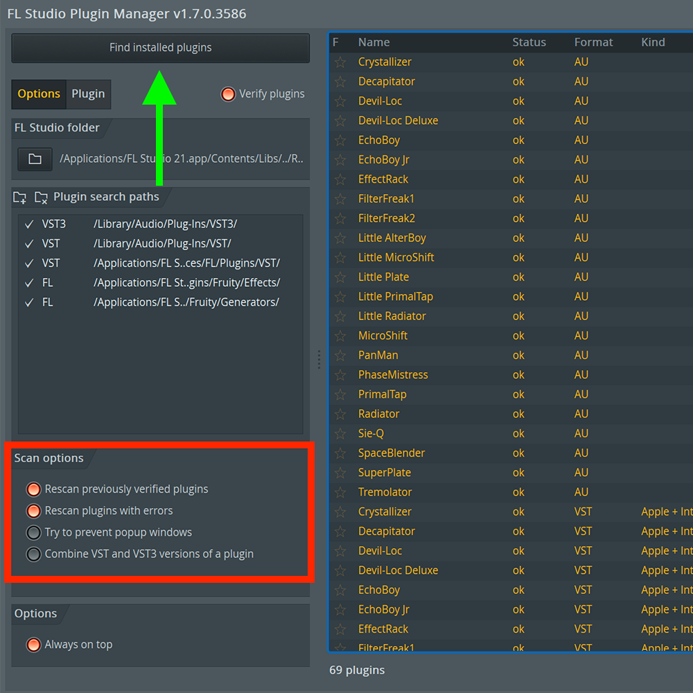 If your Soundtoys plug-ins aren't appearing in FL Studio, you may need to manually rescan them. This process is the same on macOS and Windows, so just make sure your plug-ins are installed to the default location for your operating system, then follow the steps below.
